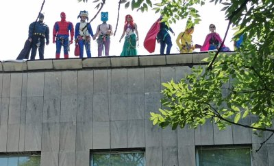 Приказни герои се спуснаха от покрива на ИСУЛ, за да оставят подаръци на онкоболни деца