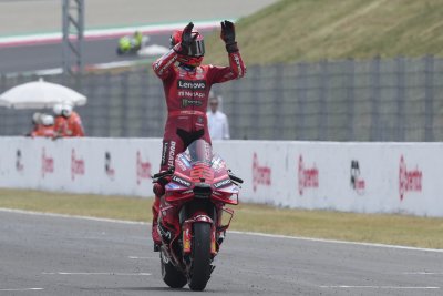 Пилотът на Дукати Марк Маркес спечели Гран при на Сан Марино в MotoGP, като триумфира на пистата...