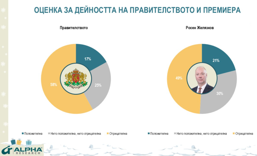 Министър-председателят Росен Желязков се оттегля от поста с 21% положителни, 30% неутрални и 49% отрицателни оценки. Тези равнища са съизмерими с отношението към мнозинството коалиционни кабинети и техните премиери през последните 15 години в края на управленията им.