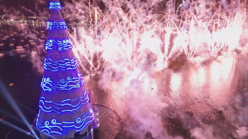 Коледно дърво с височина 80 метра, колкото 30 етажна сграда" освети нощното небе над плажа Ботафого. Светлинното шоу се създава от два милиона и 300 хиляди лампички със светодиоди.