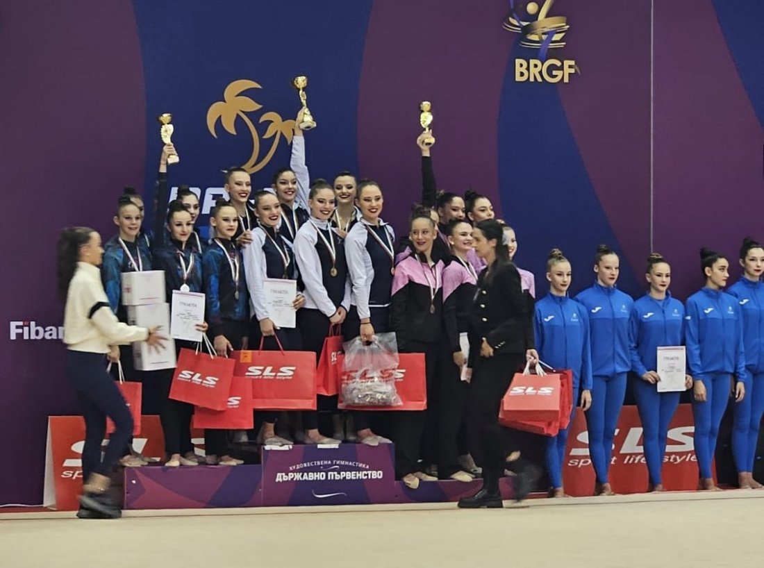 Момичетата в състав Яна Стайкова, Мария Мехлемова, Християна Ковачева, Виктория Берова, Карина Нейкова и Сияна Табакова събраха сбор от 46.625 точки (22.375 за съчетанието с пет ленти и 24.250 за три обръча и две топки) и взеха златните медали. Тези състезателки са по-голямата част от националния отбор по естетическа групова гимнастика, който преди две седмици стана европейски шампион на първенството на Стария континент в Будапеща.