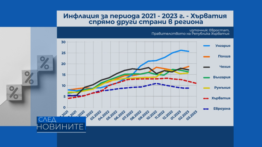 Майкъл Фауленд, подуправител за европейските и международни отношения и кредитините институции в Хърватската народна банка: "Много граждани, не само в Хърватия, твърдят, че с еврото идват по-високи цени. Кумулативната инфлация в Хърватия от 2021 г. насам, когато започна да расте, е 32%. Същото е в България и в други източноевропейски страни, където нарасна дори повече. Как може да обвиняваме въвеждането на еврото в Хърватия за инфлацията? Очевидно е, че е нещо друго. Първо инфлацията започна да расте заради неравномерното възстановяване след ковид, а след това руската агресия в Украйна."