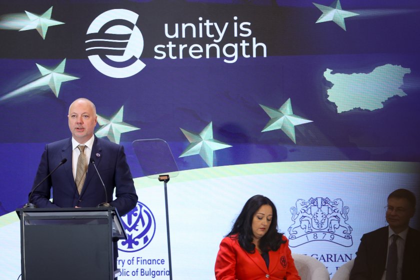 Димитър Радев, управител на БНБ: "Банковата система е силна, с висока ликвидност и ще бъде готова от първия момент да даде уверено начало на членството на България в еврозоната. Съветът ми към гражданите ми е простичък, запазете спокойствие, бъдете практични. Не е нужно да се подготвяте извънредно, не е нужно да се прави нещо допълнително предварително. Централната банка и търговските банки са подготвени."