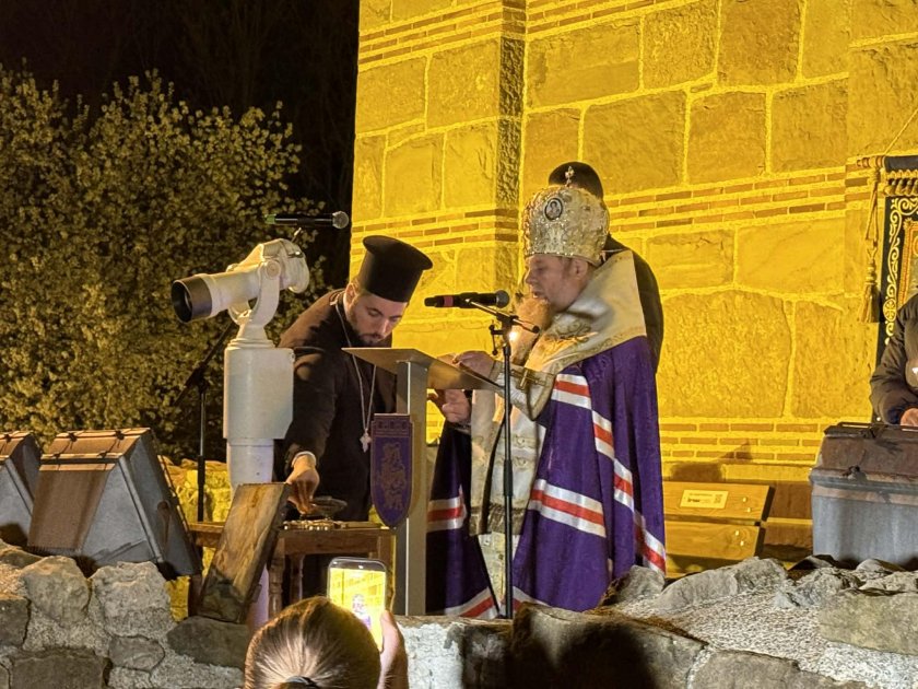 Стотици посрещнаха Великден под открито небе над историческата крепост Царевец във Велико Търново.