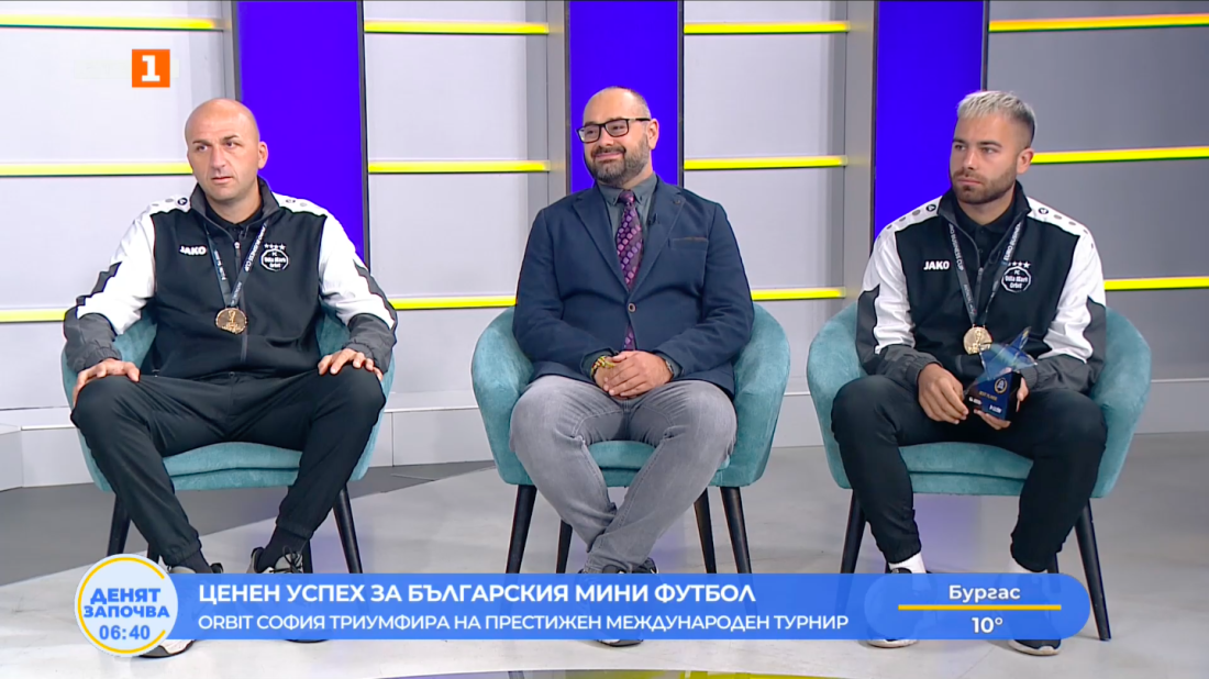 В студиото на предаването "Денят започва" гостуваха мениджърът на отбора Нено Георгиев, избраният за MVP на турнира Илия Петков и проджект мениджърът на Българска Асоциация Мини Футбол Ростислав Чанев.