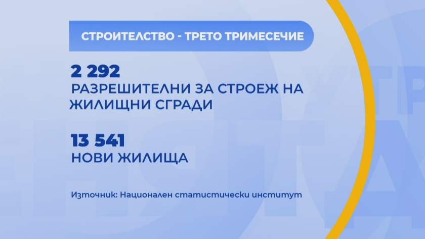 Българското строителство продължава да върви стабилно нагоре и през тази година. Само през третото тримесечие на 2025 г. местните администрации са издали над 2200 разрешителни за строеж на нови жилищни сгради. В тях се планира изграждането на повече от 13 хиляди жилища.