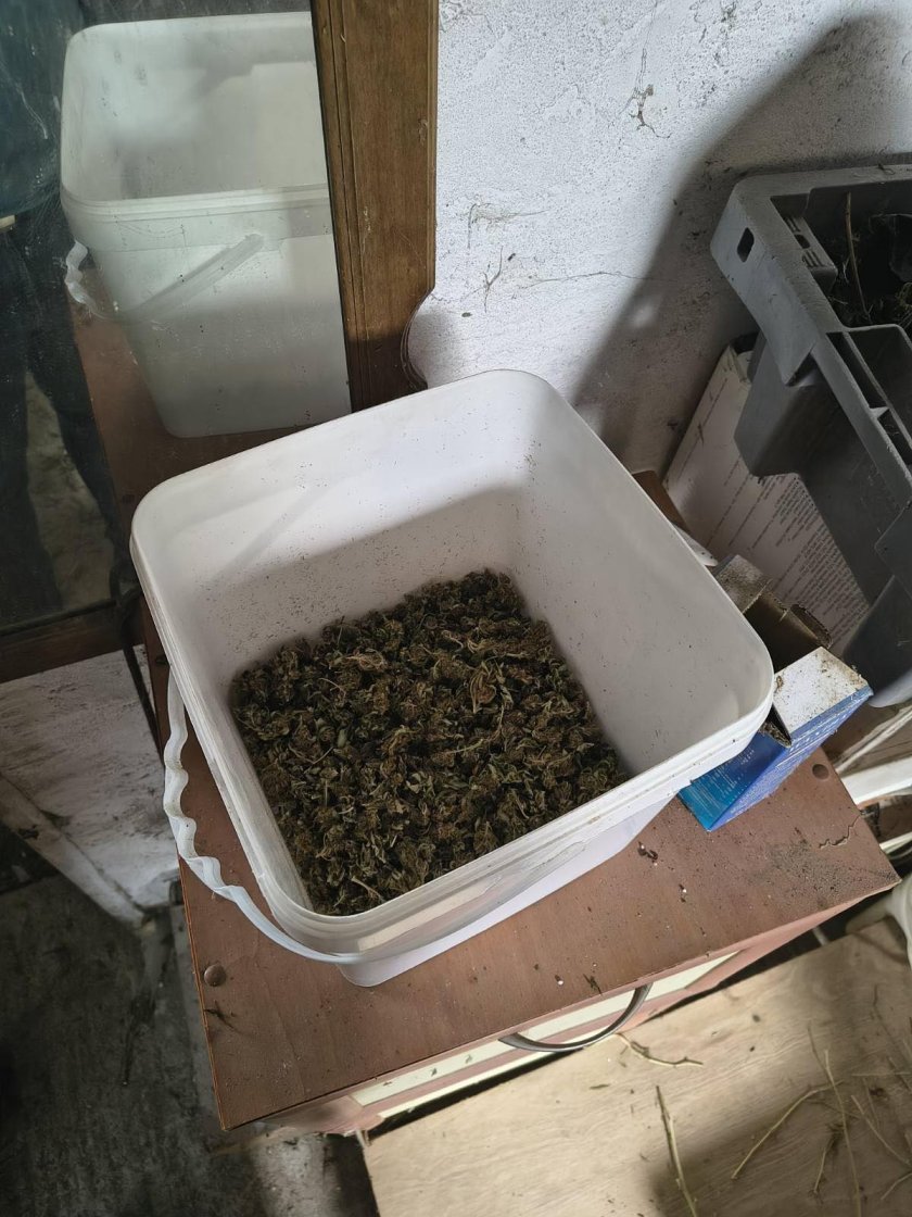 Намерена и иззета е близо два килограма марихуана, съхранявана на различни места - в пластмасови кофи, пластмасова касетка и полиетиленови торби.