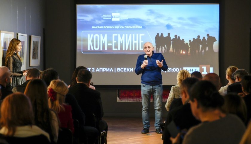 Новият игрален сериал „Ком-Емине“, продуциран от Българската национална телевизия, с изпълнителен продуцент „Мирамар филм“, започва на 2 април и ще се излъчва всеки четвъртък от 21.00 ч. по БНТ 1. Преди премиерата в ефира на обществената телевизия, специална прожекция на първия епизод събра звездите от актьорския състав и творческия екип на сериала.