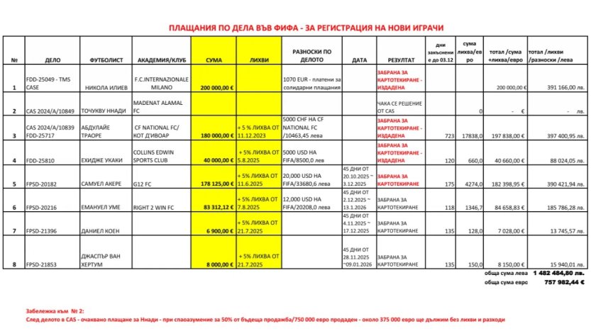 Искаме открито и честно да ви запознаем със задълженията към ФИФА, които са генерирани от „Нашият клуб – нашият президент“ по време на предишното „Европейско управление“ на ПФК Ботев Пловдив.
