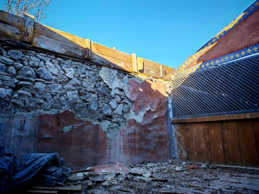 Днес десетки доброволци почистваха разрушенията и започнаха укрепването на покрива, ремонтиран преди 3 години