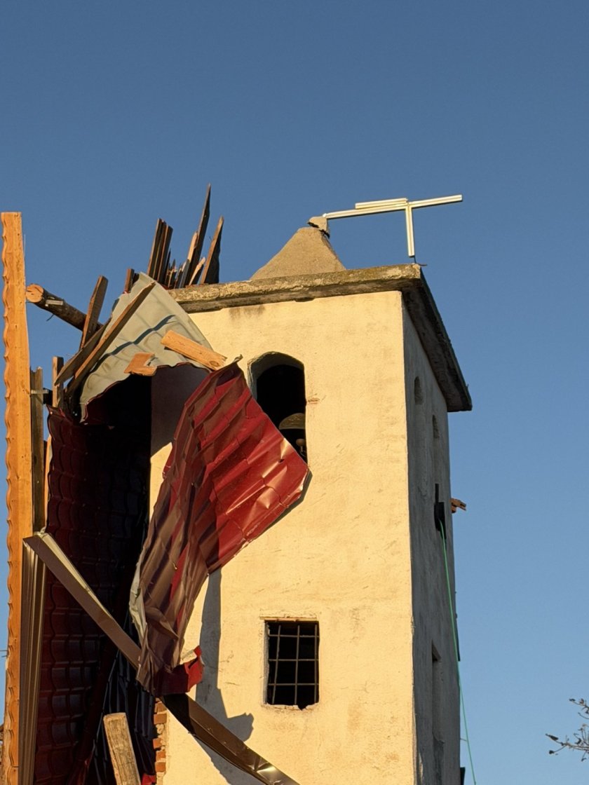 Покривът на единствената църква в селото е ремонтиран с доброволни средства и труд преди 3 години. Вчера големите ламарини от покрива са отнесени от вятъра, а черквата остава изложена на външните условия. За щастие няма пострадали хора, не са нанесени и щети по иконите и иконостаса.