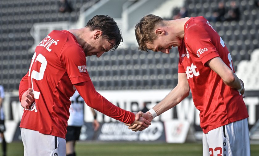 В 42-рата минута гостите удвоиха преднината си. Елиас Франко проби по десния фланг, премина последователно покрай Лукас Риян и Тодор Павлов, след което подаде към наказателното поле. Там Флориан Кребс бе оставен непокрит и стреля силно, а след рикошет в крака на Мартин Русков топката се озова неспасяемо във вратата на Боян Милосавлевич за 2:0.