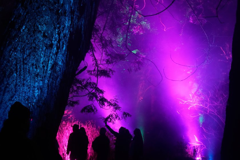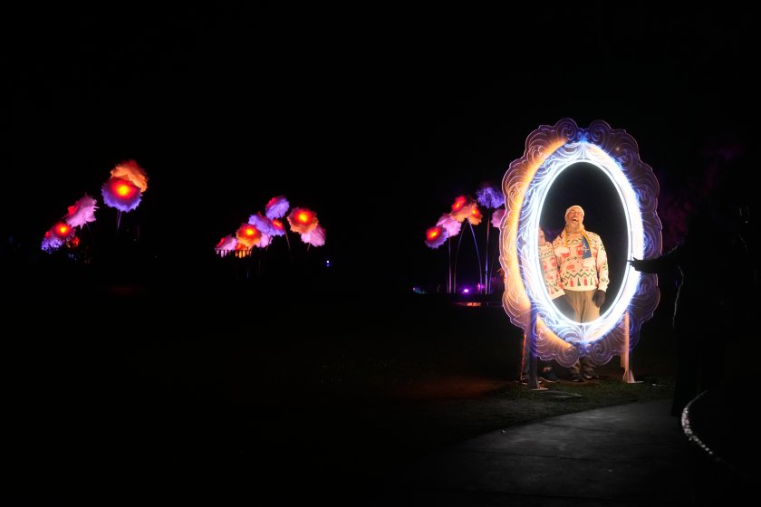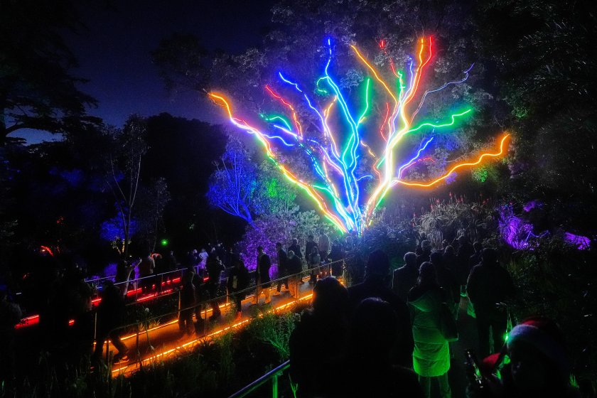 По пътека с дължина 1,6 километра в Ботаническата градина в парка се извисяват божури и цели полета от светлини. Художници са създали причудливи водни лилии и гигантски водни кончета и са превърнали ягодово дърво от Канарските острови в неоново дърво.