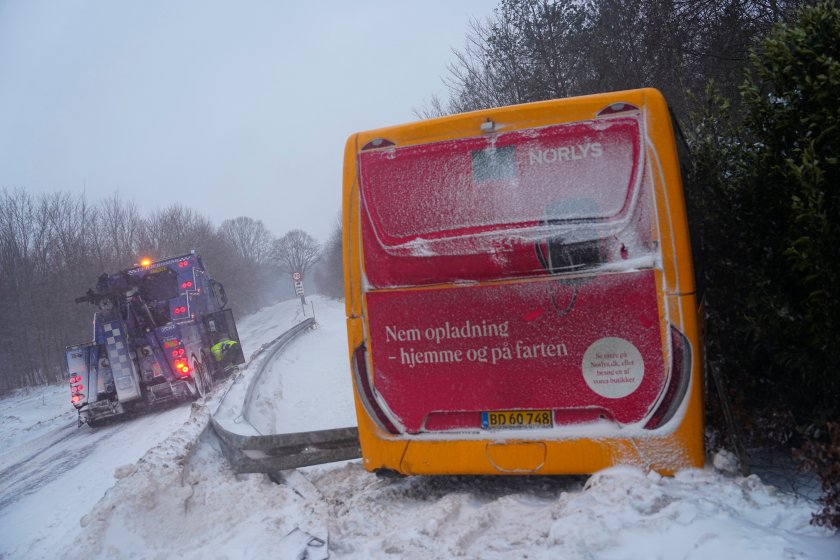 В Орхус движението на автобуси е спряно. Регионалната полиция в Копенхаген предупреди да не се предприемат "всякакви пътувания без крайна необходимост". Преди ваканцията много училища избраха днес да останат затворени. Според ДМИ на места могат да паднат до 30 см сняг.