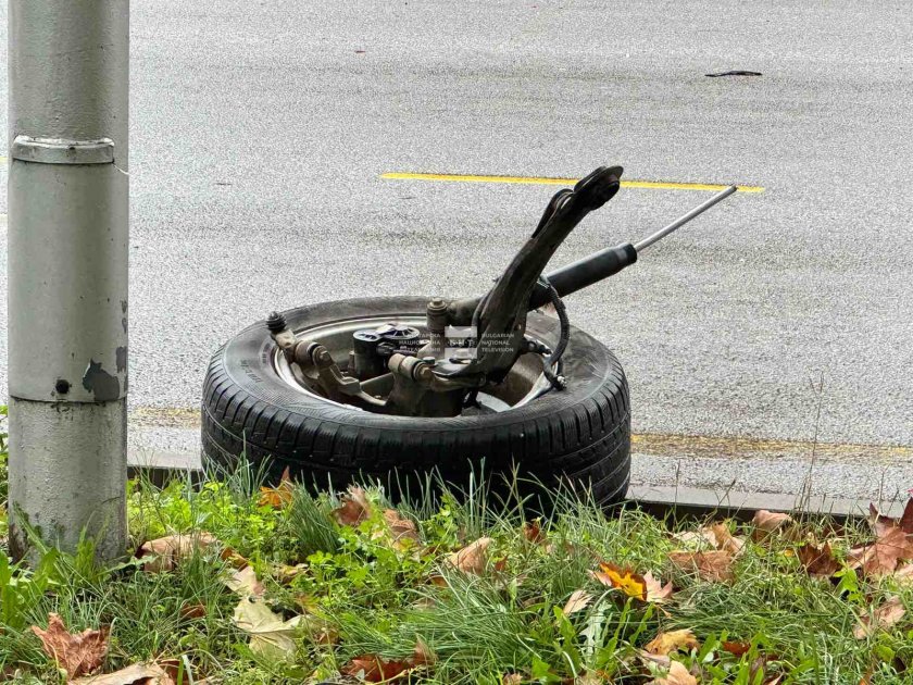 Той първо удря друг автомобил, който е преминавал напълно правомерно на зелен сигнал. След удара колата на нарушителя буквално излита от пътя и спира в тревната площ до тротоара.
