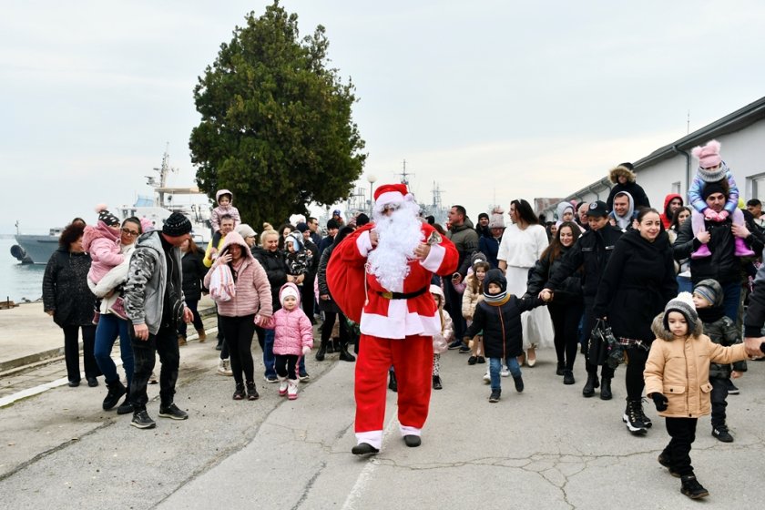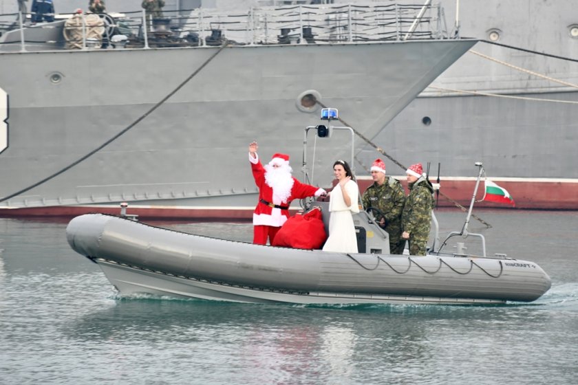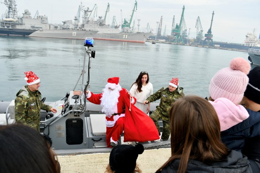 Дядо Коледа и Снежанка пристигнаха с извънреден рейс от Лапландия до Военноморска база Варна. Вместо с шейна, те се появиха на борда на бързоходна лодка от състава на Военноморските сили - модерно и оригинално „превозно средство”, подходящо за морския дух на Варна.