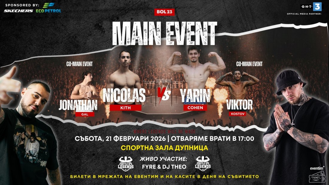 Град Дупница се готви да посрещне едно от най-зрелищните спортни събития на годината. На 21.02.2026г. от 18:00 международната организация Battle of Legends се завръща с 23-то издание на своята професионална галавечер, превръщайки Спортна зала „Дупница“ в арена на невероятна човешка сила, дисциплина и атлетизъм.