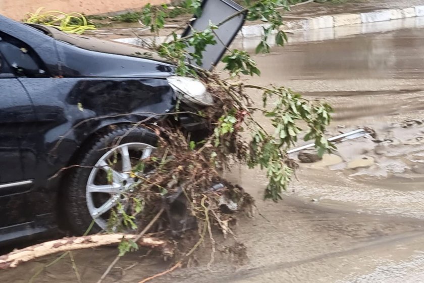 Вследствие на обилен дъжд се е получила вълна, която идва от Елените, и е заляла всички хотели и сгради. Получени са сигнали за автомобили и сгради под вода и за бедстващи хора.