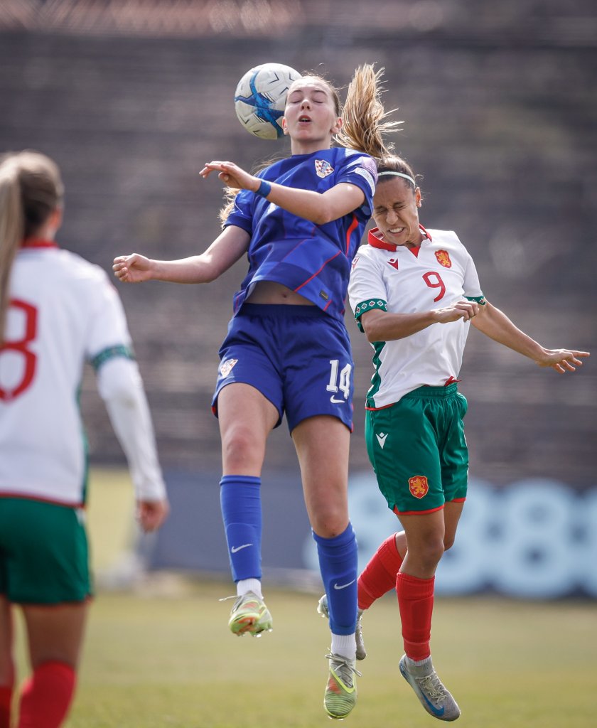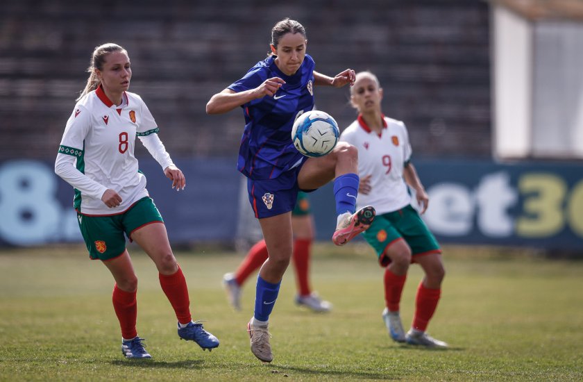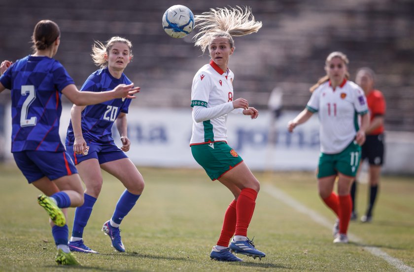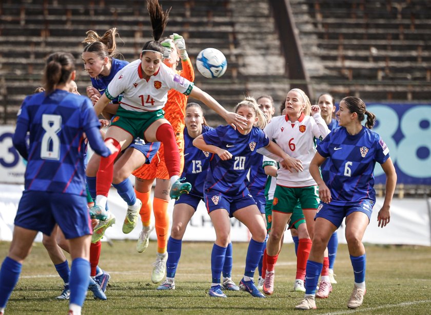 Снимки от европейската квалификация между женския национален отбор на България и на Хърватия на стадион „Александър Шаламанов“ в София. Срещата бе официален дебют за новия наставник на "лъвиците" Калоян Петков. България загуби с 0:1.