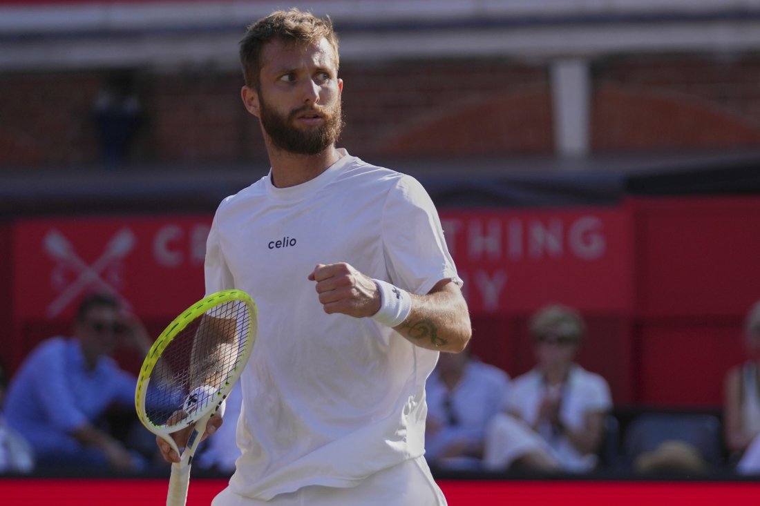 Корентен Муте поднесе изненада на старта на турнира „Куинс Клъб“ в Лондон. Французина елиминира Тейлър Фриц със 7:6(6), 6:7(7), 5:7 в мач от първия кръг. Така американецът, който само преди седмица триумфира с титлата в Щутгарт, трябваше да си стегне багажа.