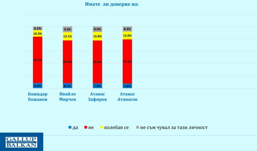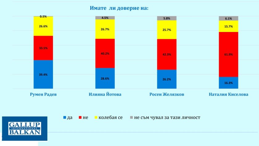 Не се наблюдават съществени размествания в доверието към заемащите висши държавни длъжности и сред партийните лидери.