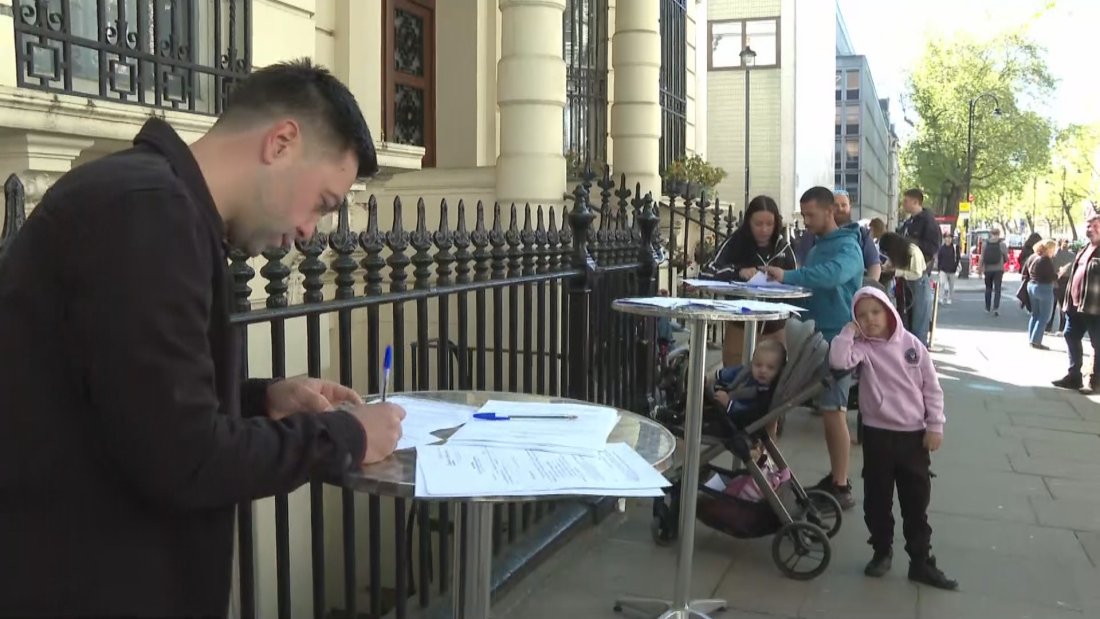 И във Великобритания броят на избирателните секции е по-малък. Тротоарът пред посолството ни в Лондон е запълнен. Хората, попълват декларации на масички, които са изнесени отвън. Такава е обстановката още даже от 6.30 часа, когато преди да отворят първите секции хората чакат търпеливо своя ред.