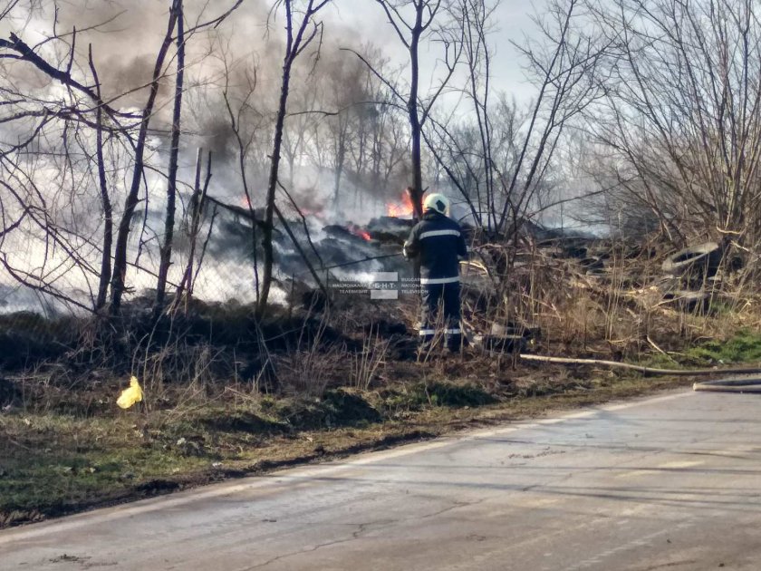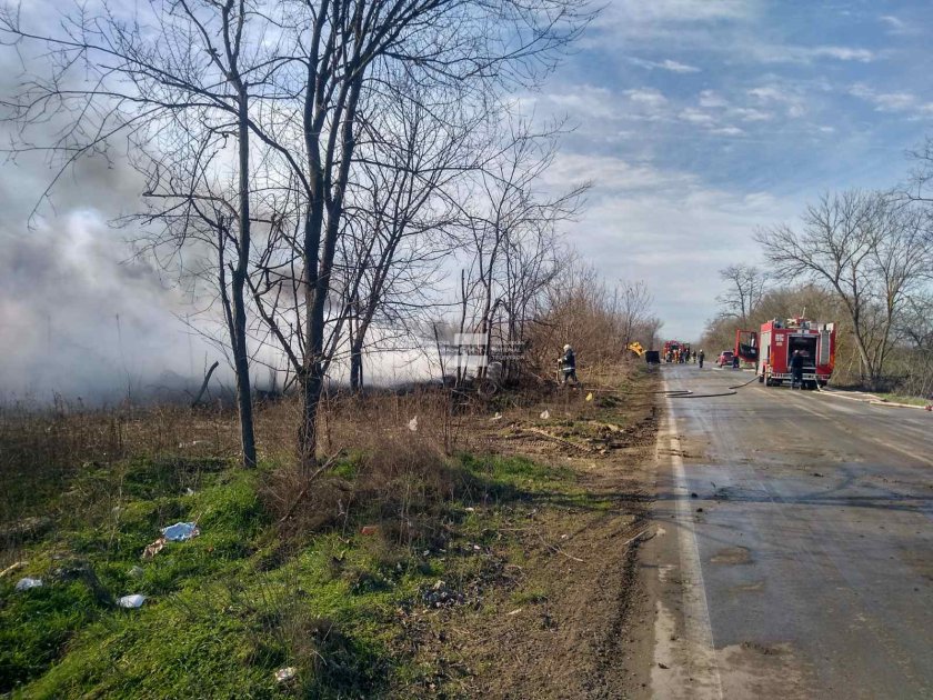 Гори депо за стари гуми между Варна и Белослав
