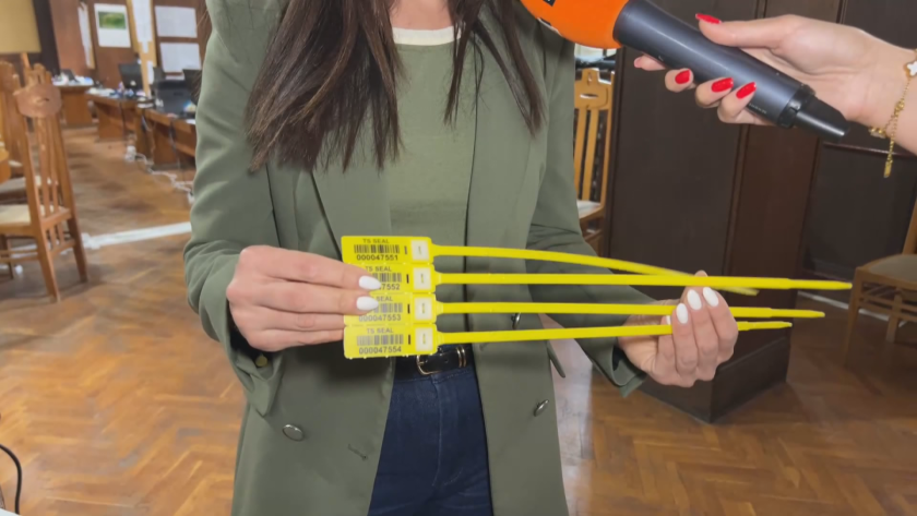 Маргарита Събева, зам.-председател на РИК - Бургас: "Всяка една избирателна комисия в страната ще получи по една такава жълта пломба, която представлява "свинска опашка". Трябва да я пазят, защото ще я използват накрая при опаковането на белия чувал. Пломбата се поставя накрая, на финала, след опаковането на чувала, след завързването му с хартиена лента."