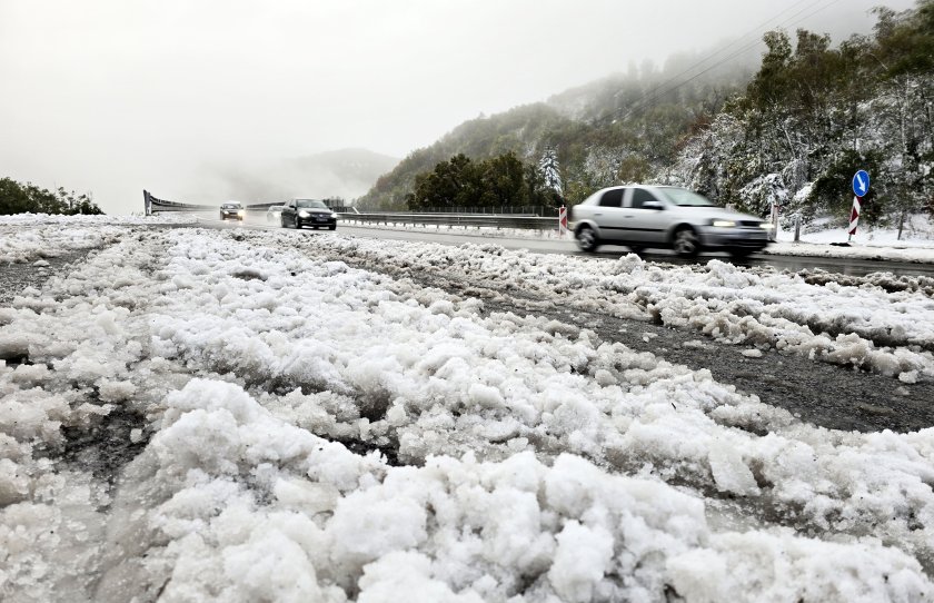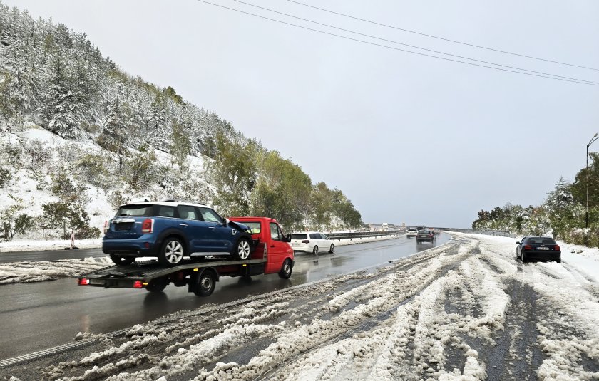 Октомврийският сняг изненада и шофьорите и пътноподдържащите фирми на автомагистрала "Хемус". Редица автомобили и камиони закъсаха с летните гуми на непочистената магистрала.