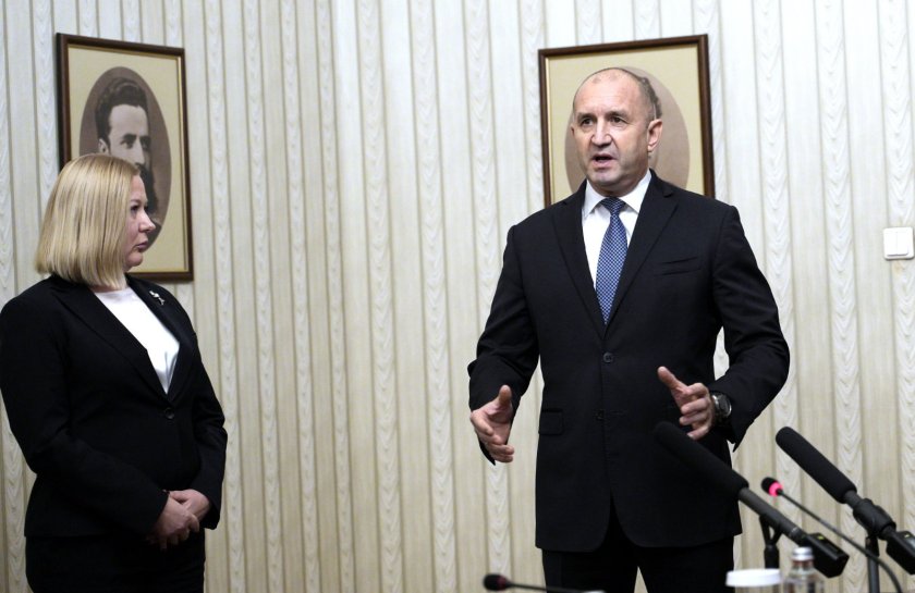 Румен Радев, президент на Република България: "След като първата по численост парламентарна група върна мандата, съгласно чл. 99 от Конституцията следва да връча вторият проучвателен мандат на вашата парламентарна група. Така, че заповядайте да обявите вашия кандидат за служебен министър-председател."