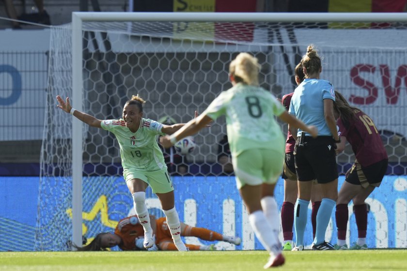 Италия стартира участието си на европейското първенство по футбол за жени в Швейцария с успех. "Скуадра Адзура" победи Беглия с 1:0 в мач от група B на "Стад Турбийон" в Сион. Единственото попадение отбеляза Арияна Карузо в края на първото полувреме.