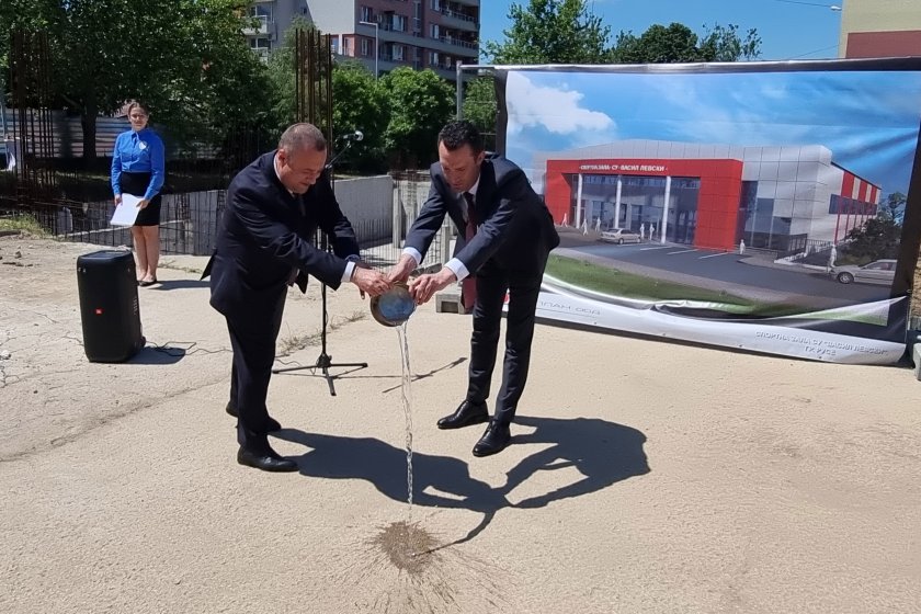 Министърът на младежта и спорта посети Русе, за да възобнови официално строителството на спортната зала с плувен басейн в училище „Васил Левски“.