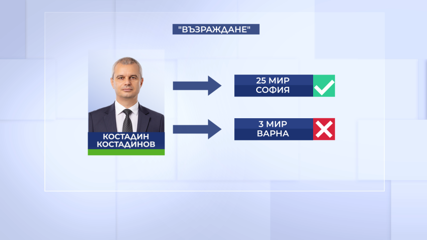 Председателят на "Възраждане" Костадин Костадинов избира 25 МИР София вместо Варна. А Цончо Ганев ще бъде народен представител от 23 МИР София.