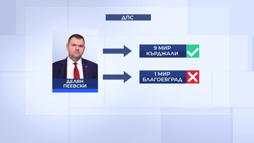 Трима, избрани за депутати от ДПС можеха да си изберат кой район да представляват. Това са лидерът на партията: Делян Пеевски, който ще бъде депутат от Кърджали вместо Благоевград. Димитър Аврамов - избра Плевен, а Халил Летифов е посочил Смолян.