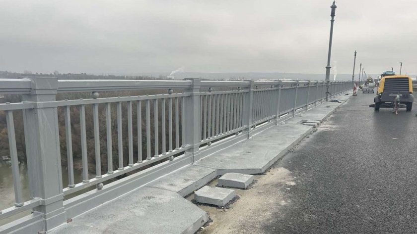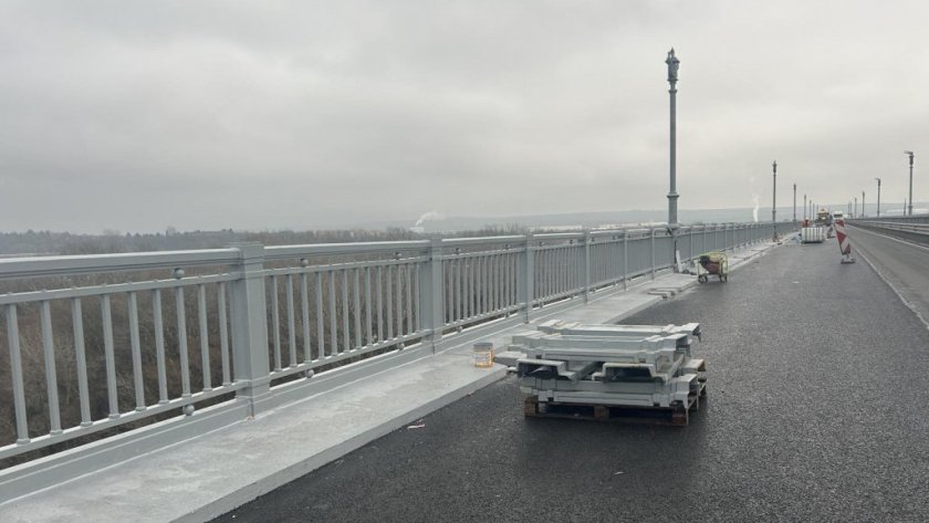 Монтирани са парапетът и стълбовете за осветление в затворения за основен ремонт 320-метров участък на "Дунав мост" при Русе. В платното в посока Румъния приключи и полагането на защитното покритие по тротоарния блок и ремонтът на гребеновидните фуги в участъка.