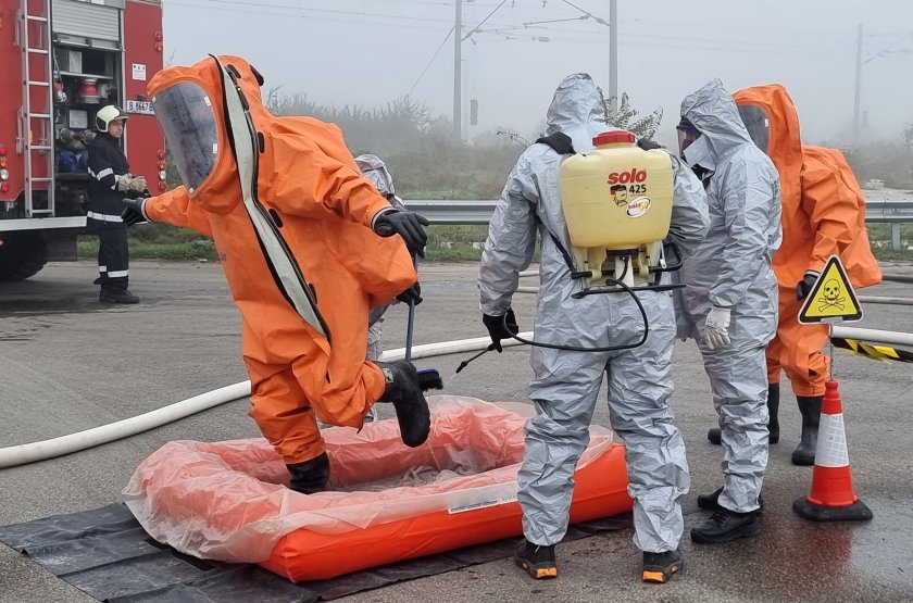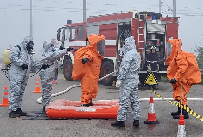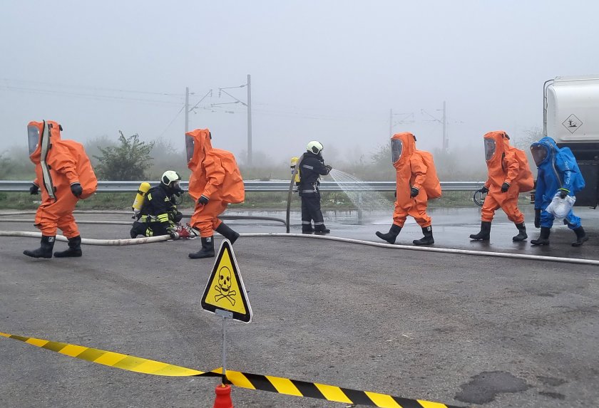 Учението се проведе на границата на общините Белослав и Девня, където има концентрация на фирми, които използват агресивни химически вещества