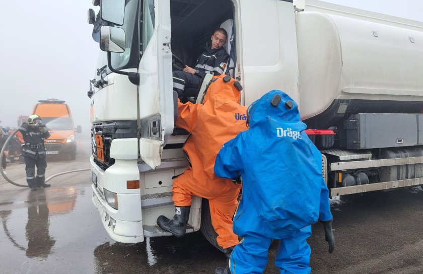 Разлив на сярна киселина от катастрофирал камион с цистерна край Варна овладяха по време на учение представители на различни институции. По сценарий тежката машина, превозваща химическото вещество, е самокатастрофирала. При инцидента цистерната се е пробила и е изтекла киселина на пътя. Шофьорът е пострадал и е заклещен в кабината на камиона.