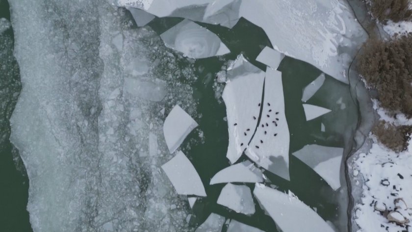 Това е първият случай през меките зими на последното десетилетие, в който огромната водна площ замръзва.