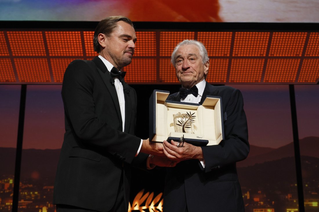 Тази вечер в Кан беше връчена първата почетна "Златна палма". С нея беше удостоен големият актьор, режисьор и продуцент Робърт Де Ниро. Той получи отличието от Леонардо Ди Каприо.