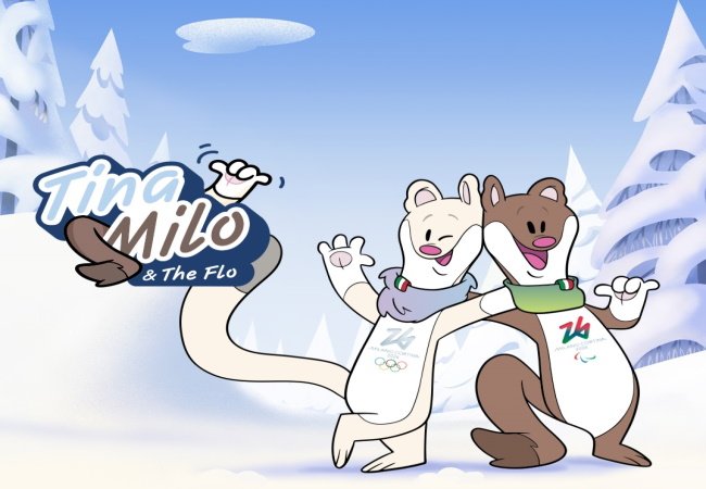 Двата хермелина (животни, близки до поровете, известни още като ермини) са създадени от ученици от училище в малкото южно италианско градче Таверна. Те бяха представени официално през февруари 2024 година и спечелиха общественото гласуване, изпреварвайки над 1600 други проекта. Имената им идват от двете градове-домакини – Тина е съкратено от Кортина д’Ампецо, а Мило – от Милано, като двамата символизират „съвременния, жизнен и динамичен италиански дух“.
