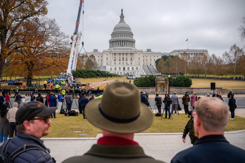 Традицията на коледното дърво на Капитолия стартира още през 1964 г. Тогава председателят на Камарата на представителите Джон У. Маккормак поставил живо дърво на моравата пред сградата. Когато след няколко години дървото загинало, архитектът на Капитолия помолил горската служба на САЩ да предостави коледно дърво. Така и до днес всяка година се избира различна национална гора, за да осигури „Дървото на хората“.