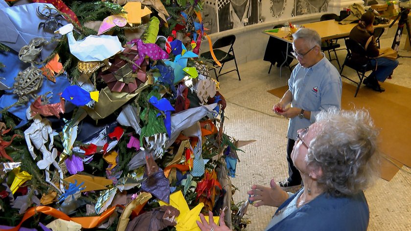 Дървото с оригами е кулминацията на празничния сезон на музея вече 40 години. Доброволци от цял свят се включват в изработването на стотици нови модели. Сложните фигури обикновено се правят от един лист хартия, но понякога изработката им отнема дни или седмици, за да станат перфектни.