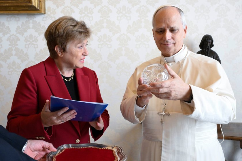 Управляващият директор на Международния валутен фонд Кристалина Георгиева съобщи, че е имала среща с папа Лъв XIV, която определи като голяма чест. По думите ѝ папата е „истински морален компас“ в сложната международна обстановка.