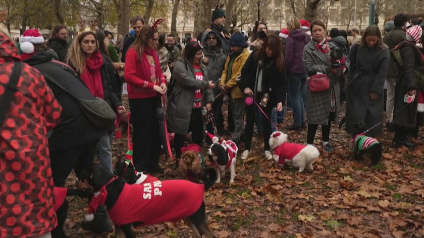 Кучета и техните собственици, облечени в коледни пуловери и шапки с помпони, разведриха мъгливия декемврийски уикенд.
