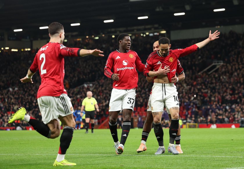 Футболистите на Рубен Аморим на три пъти държаха водачеството в свои ръце, но играчите на Андони Ираола показаха характер, особено през второто полувреме, когато обърнаха до 3:2, а след това трябваше да наваксват, изоставайки при 3:4. Точни за "червените дяволи" в този спектакъл бяха Диого Далот, Каземиро, Каземиро и Матеус Куня, а попаденията за "черешките" отбелязаха Антоан Семеньо, Еванилсон, Маркъс Тавърниър и Ели Крупи.