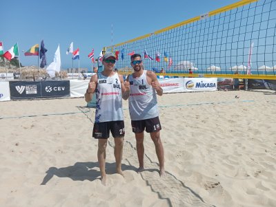 В неделния следобед Механджийски и Калчев се справиха със сериозната съпротива от поставените под номер 2 в схемата италианци Тициано Андреата и Давиде Бенци и в изключително напрегнат двубой за третото място успяха да ги победят с 2:1 (23:21, 17:21, 15:12) след близо час игра.
