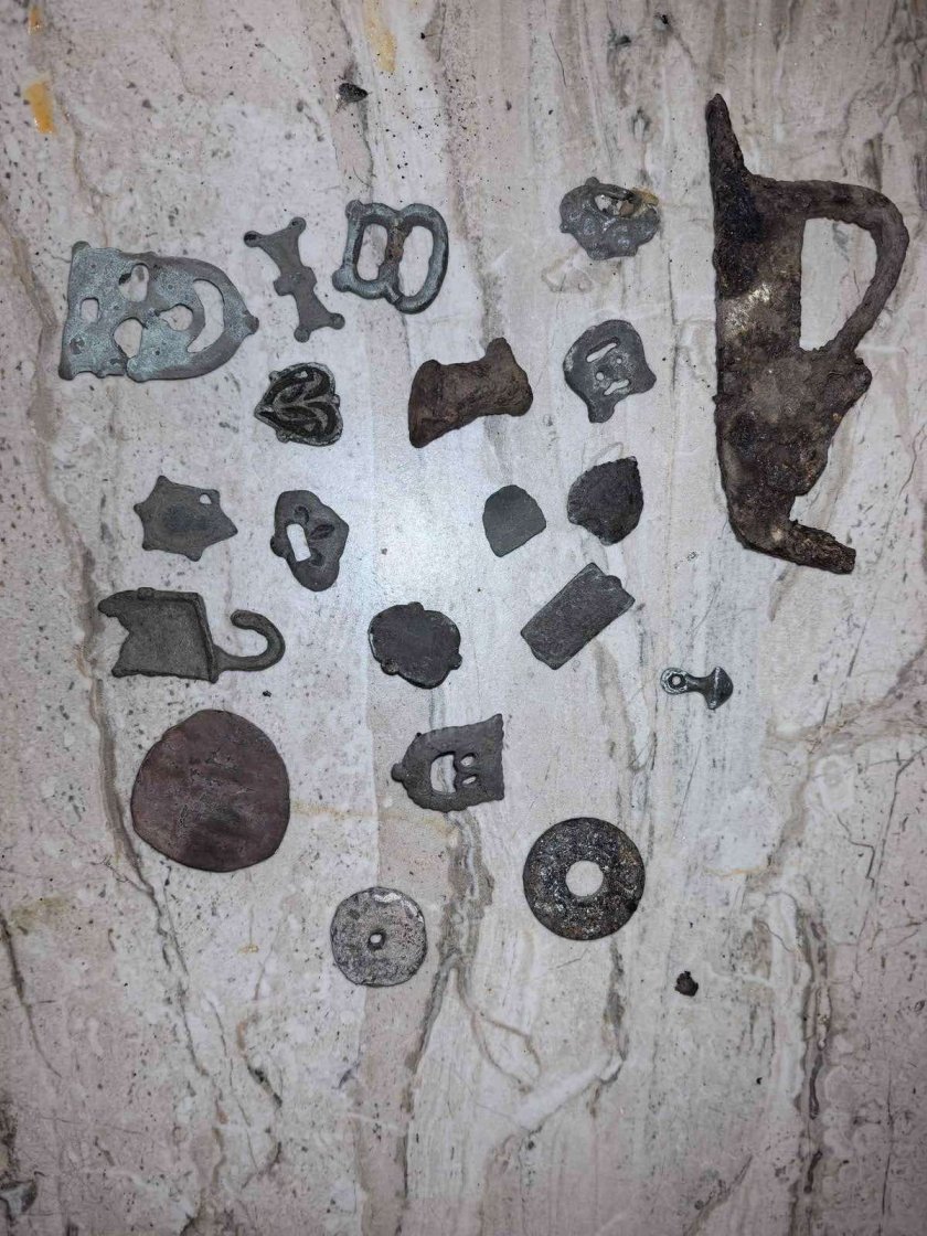 Освен тях са открити още два метални кръгли елемента с дупка в центъра, два метални накита, метално украшение във формата на листо, метално копче с кукичка за захващане и изображение на корона, както и 14 метални предмета, представляващи накити и части от накити с различна форма и големина.