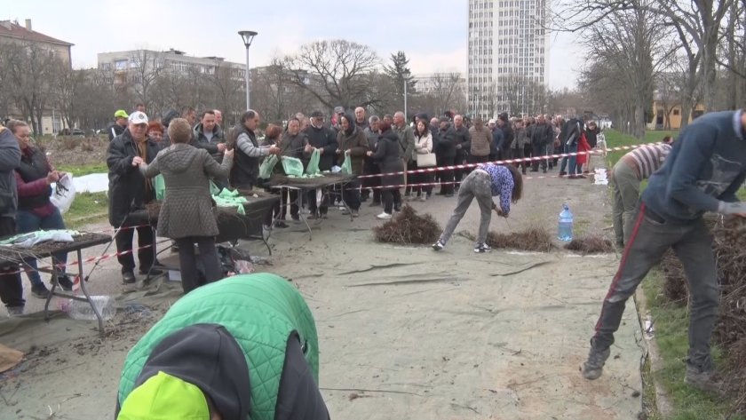 Огромна бе опашката от чакащи да получат различни плодни фиданки, както и брези, върби, брястове и други, които да засадят в дворове, градини и междублокови пространства. Иницивата продължава вече 10 години и цели да бъдат засадения 6 милиона дръвчета.