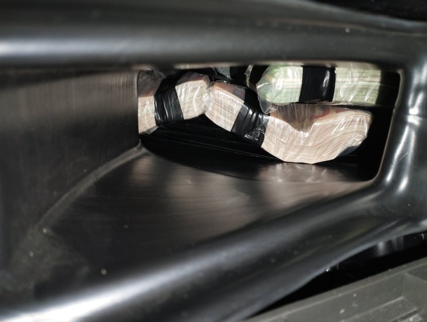 В хода на контролните действия, в шофьорската кабина във въздуховода на арматурното табло, митническите служители откриват еврови банкноти в купюри от 200, 100, 50 и 20 евро с обща стойност над 100 000 евро.