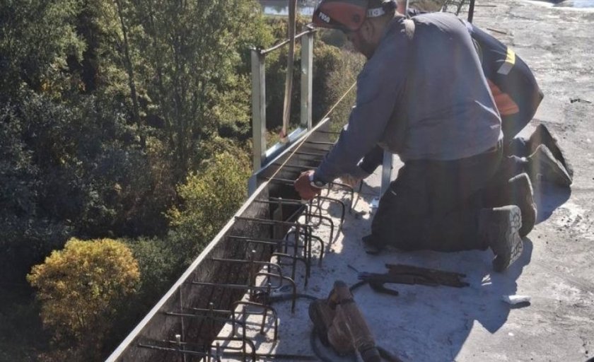 Монтират се корнизни елементи, армировка и болтови дюбели в затворената 320-метрова отсечка в посока Румъния на "Дунав мост" при Русе. Завърши бетонното закрепване на всички нови пътни панели и започна монтажът на армировката и изработването на кофраж за тротоарния блок.